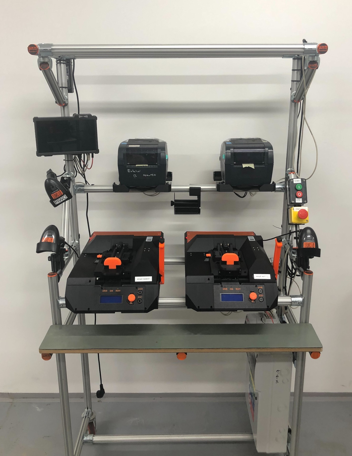 Zákazník požadoval implementaci lisovacího přípravku na spony přímo na pracovišti, tak aby bylo součástí pracovního stolu. První koncept si ukázal být jako příliš drahý na vývoj a výrobu. Využilo se stávající řešení od dodavatele spon ve formě lisovacích kleští.